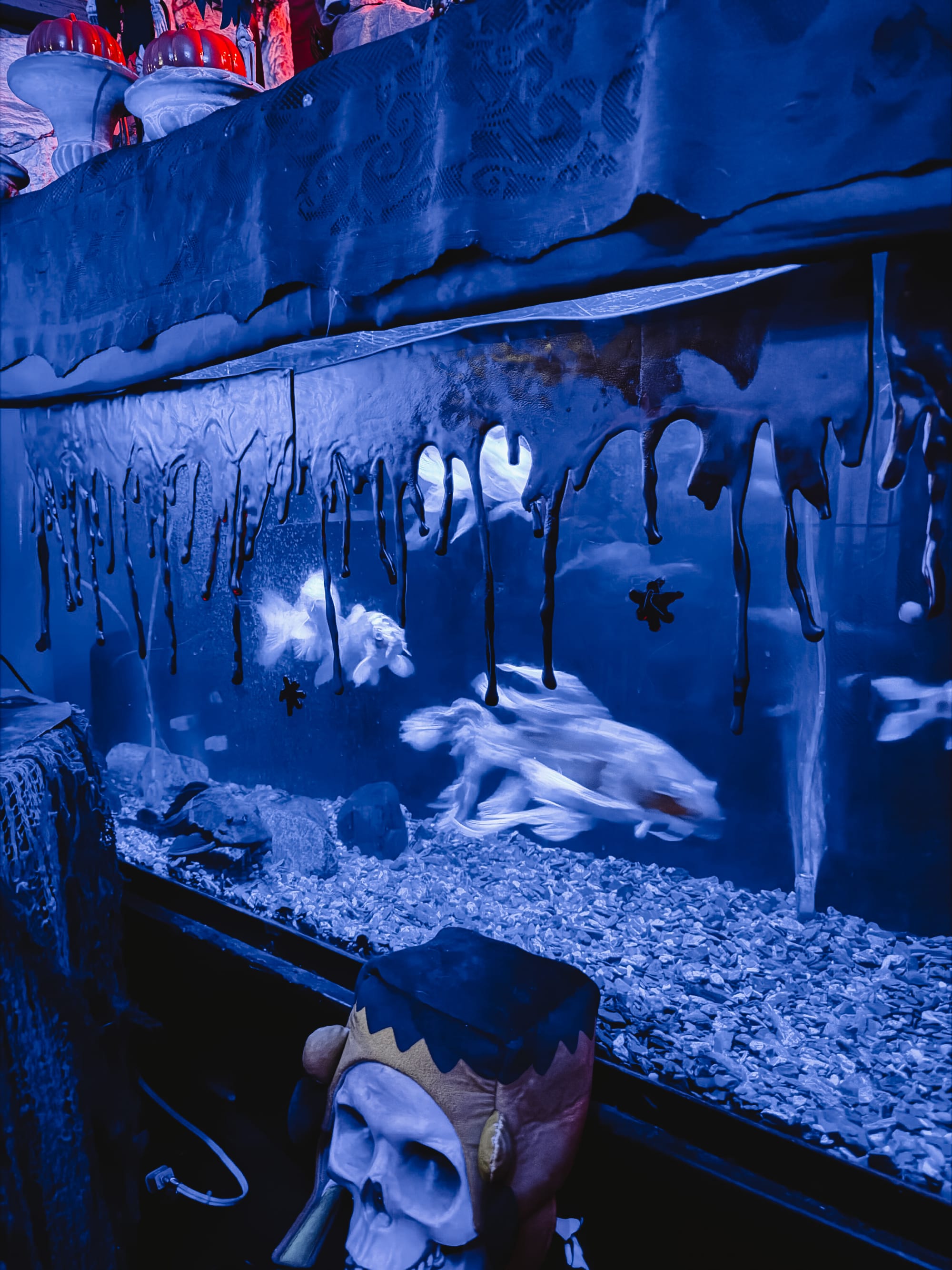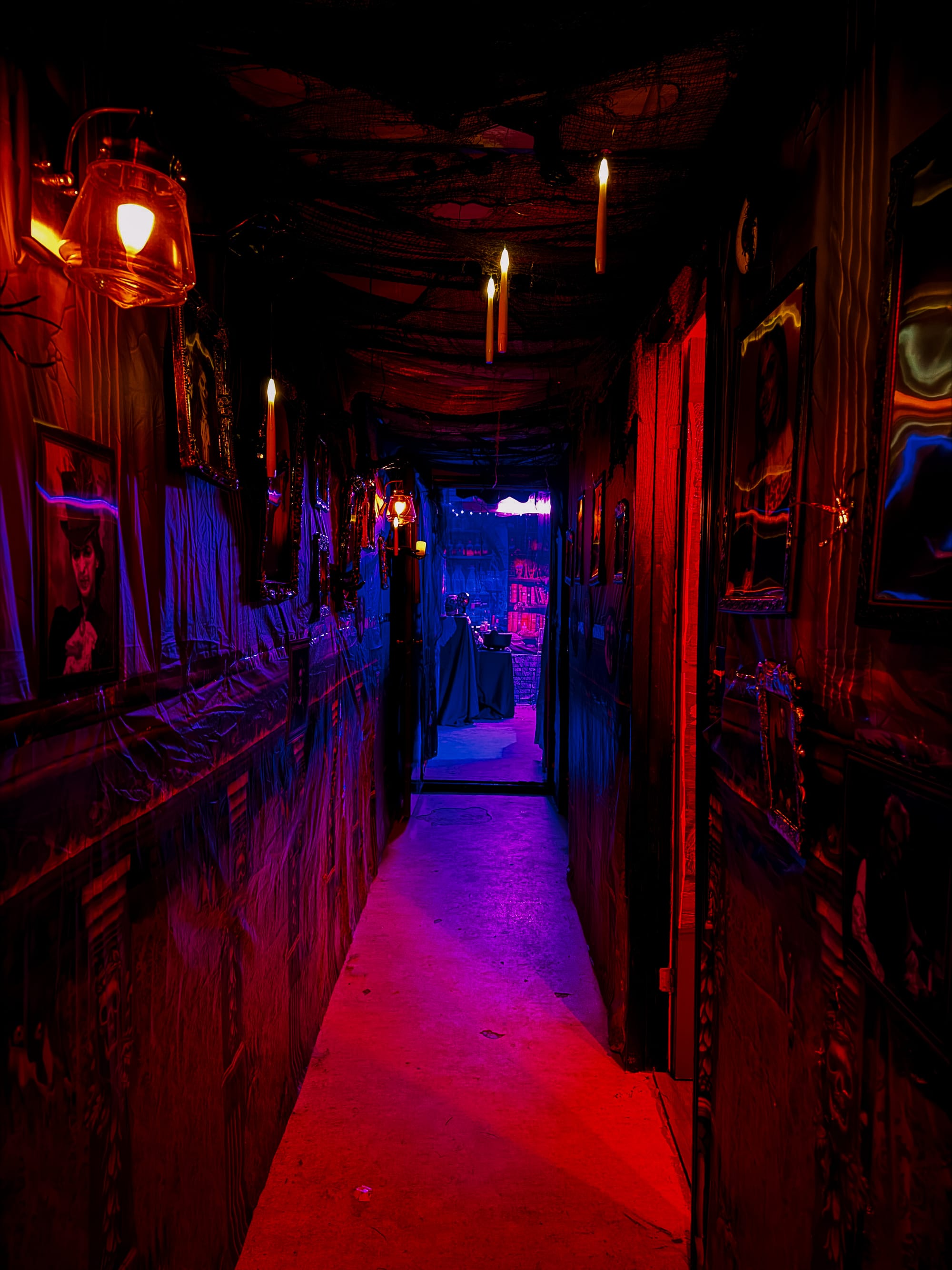 The haunted house features 5 separately themed rooms before you even reach the front door of the real home. From there you can step in and take your time to walk down the spooky hallway and into the garage also themed with so much to see.